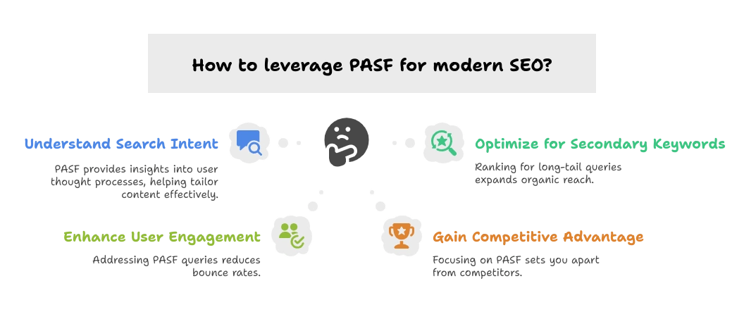 - PASF-driven content reduces bounce rates by answering user follow-up questions effectively.